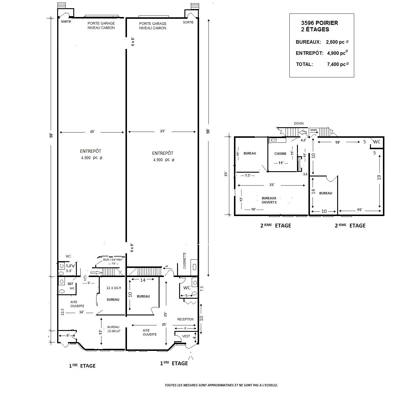 7,400 sq.ft. Desireable office warehouse, on Poirier blvd. near Thimens close to Place Vertu in a modern and well-maintained building. Office space is on 2 floors with reception/open area, 6 closed offices/ conference, 4 w/c, and kitchenette. 4,800 s.f. warehous, at 20′ clear height with 2 truck level garage doors.